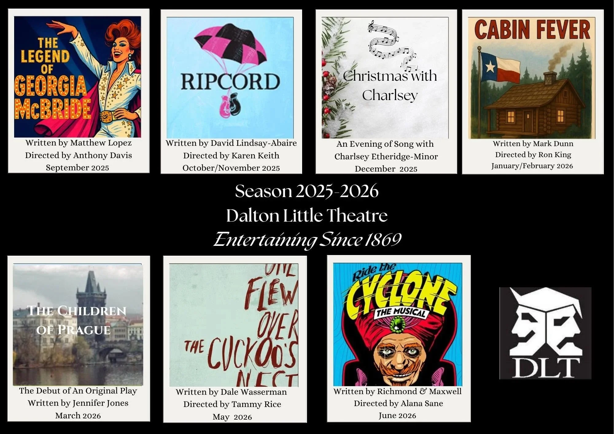 Dalton Little Theatre, DLT, held its first documented performance in 1869 under the name The Dalton Amateurs. We officially became Dalton Little Threate in 1955.